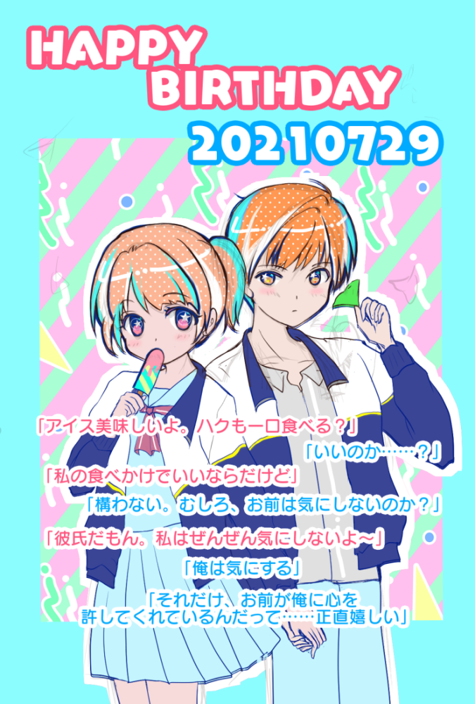 お誕生日おめでとうございます! 二人が中学生時代から交際していたら……という妄想をしました。きっとハクだったらすごく大事にしてくれそうだなって思います。